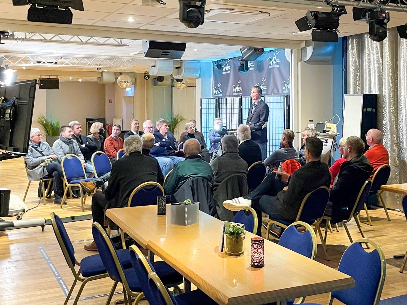 Am Donnerstag, den 3.3.2022, fand eine gut besuchte Präsentation des Vereins WIR für Lüdenscheid e.V. in der Tanzschule Stadtmüller und Tegtmeyer statt: Knapp 50 Teilnehmerinnen und Teilnehmer nahmen vor Ort oder online daran teil. Oliver Scherff, Marc Tegtmeyer und Christian Jünemann informierten Privatpersonen sowie Vertreter:innen aus Handwerk, Industrie, Einzelhandel und Stadtverwaltung über die Struktur und die Projekte des Vereins, beispielsweise: die Unterstützung des STL-Projekts Sauberes Lüdenscheid mit einem Frühjahrsputz in der Innenstadt am 2. April 2022, die Häppchentour der Lüdenscheider Gastronomie am 27./28. August 2022, das Projekt Lüdenscheider Schulen gestalten die Zukunft Lüdenscheids an der Fassade des leerstehenden Leffers-Gebäudes im Stadtzentrum, den Ausbau der Beleuchtung des Rathausplatzes u.v.m.