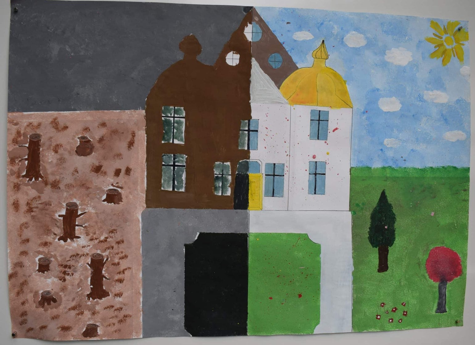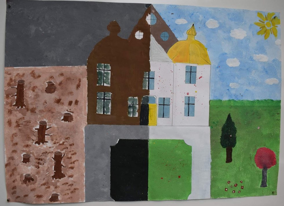 Die Stadt ist im Moment noch nicht schön genug, deswegen möchten wir, dass es schöner aussieht, z.B. mehr farbige Bilder oder Pflanzen. Wir möchten, dass der Müll aufgehoben wird. Unsere Bilder sollen die Stadt schonmal verschönern.